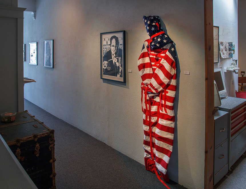 At the opening, from 2-4 PM, Henry James Korn will launch his new book Amerikan Krazy after which this show was named and thematically assembled. Henry's comic masterpiece picks up where George Orwell, Jules Verne, and Edward Abbey left off, and turns political writing into art. See: (www.boffosockobooks.com)